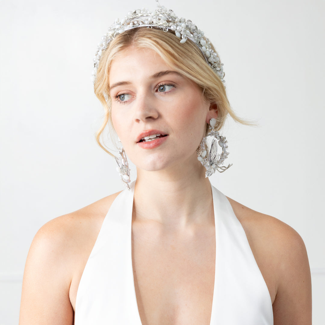 Dangle earrings are characterized by their long designs that hang down to the shoulders. They are perfect for evening wear and can be beautifully paired with our handmade Venetian headbands for a cohesive look.